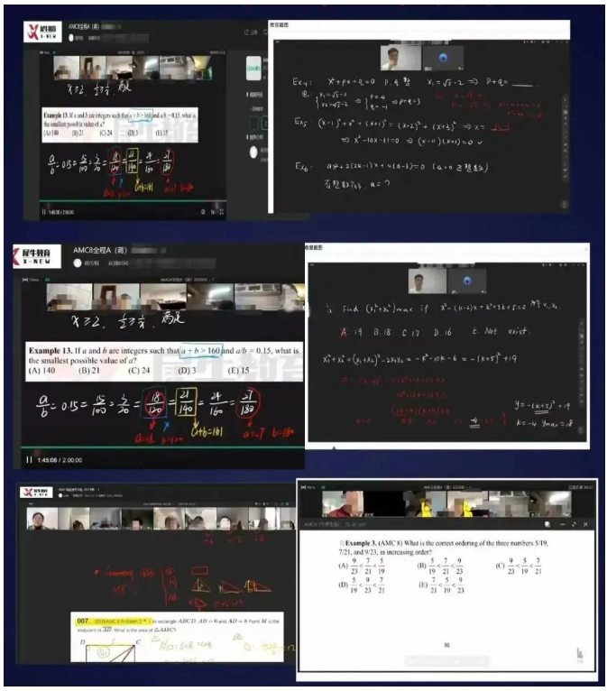 犀牛AMC8线上课程是直播模式,classin授课,区别于传统线上录播课程,可随时与老师在线互动答疑。课后可以回放,反复观看,掌握课堂知识点。
