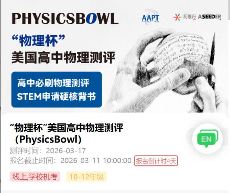 若是在 BPhO 中未取得理想名次,不妨转战 3 月开考的物理碗(Physics Bowl)。两大竞赛考点重合度极高,均覆盖力学、电磁学、热学、光学、现代物理等高中物理核心原理与概念,有 BPhO 知识基础的同学,只需补充物理碗独有知识点,将核心精力放在专项突破和真题训练上,就能实现奖项冲刺效率最大化。