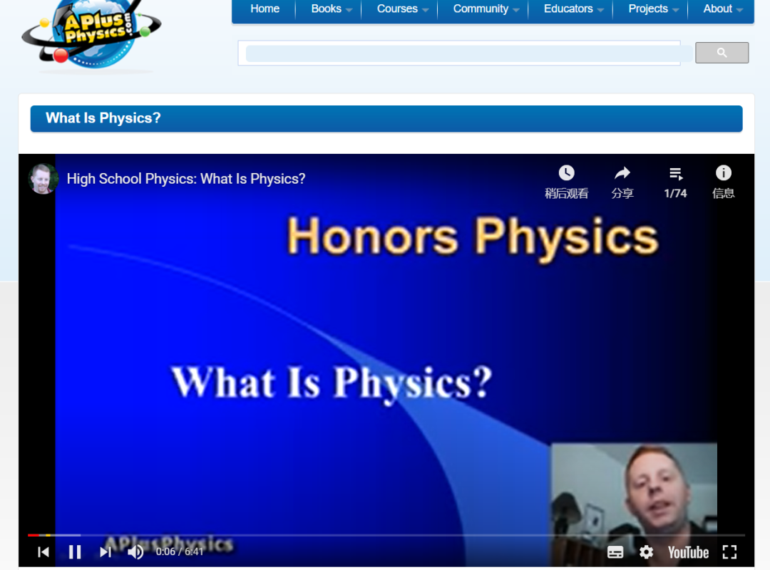 学生通过这个网站可以跳转到正规渠道买书,或者观看免费的物理视频,不过视频来源为Youtube,只推荐给能够科学上网的同学。
