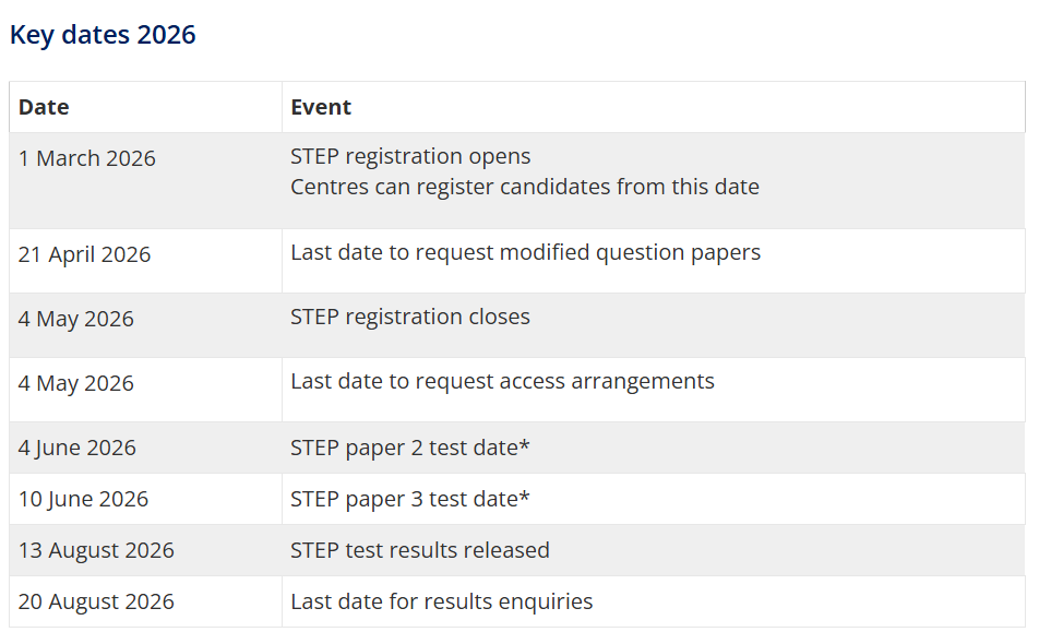 STEP 2考试日:2026年6月4日(比去年提前7天)