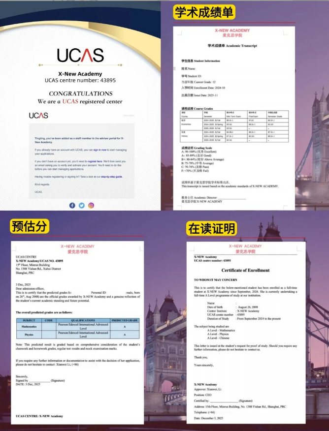 犀牛是UCAS官方注册中心,预估分、成绩单、在读证明都可开开具,且英国院校也对我们很信任。