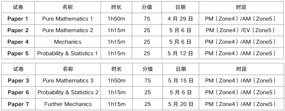 CIE的Alevel数学考试内容:主要包括Pure Math纯数,Mechanics力学,Probability & Statistics 概率统计学三个部分,学生要从6个Paper中选4个考,每个Paper考察内容不同: