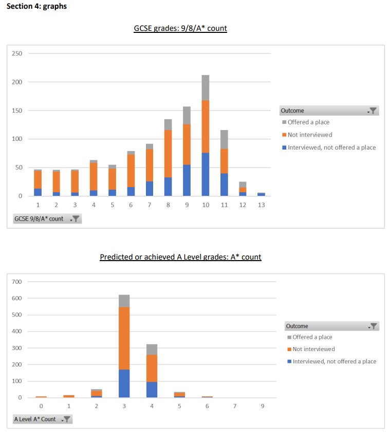 以牛津大学此前公布的数据为例,在2022/23学年PPE专业申录报告中,各申请资料占有不同权重,高权重为TSA笔试成绩、GCSE和Alevel成绩,大多数offer holder学习了9-11门GCSE↓:
