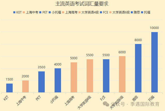 ■主流英语考试词汇量要求,可以先行对照一下孩子词汇量掌握情况