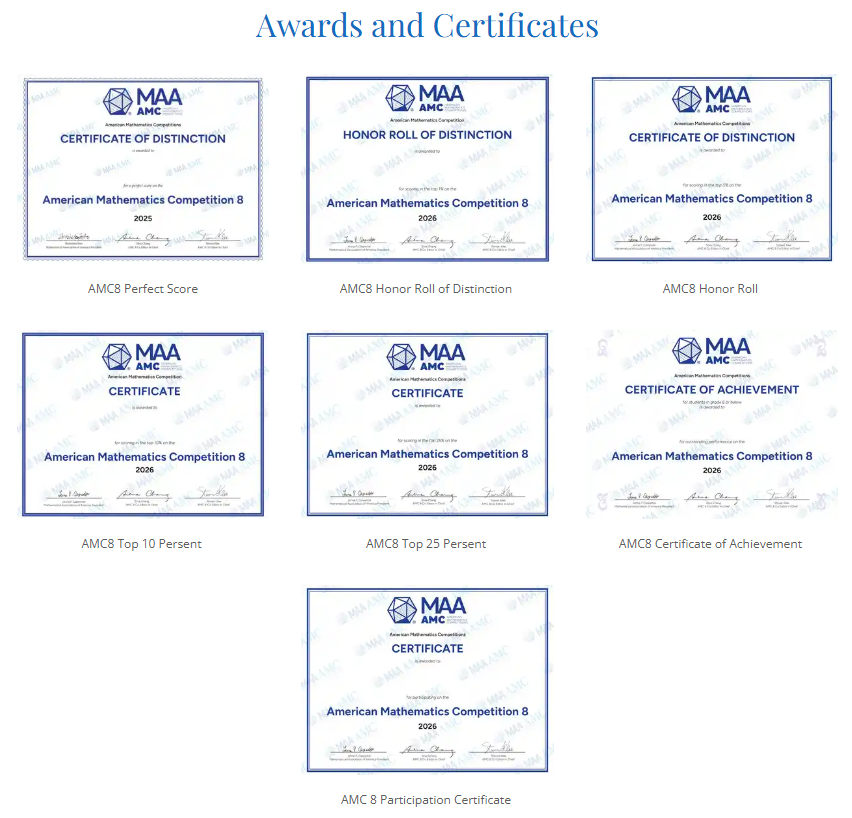 2026年AMC8数学竞赛电子版获奖证书现已开放下载!凡通过中国区组委会报名的考生,请尽快前往官方网站完成证书下载。