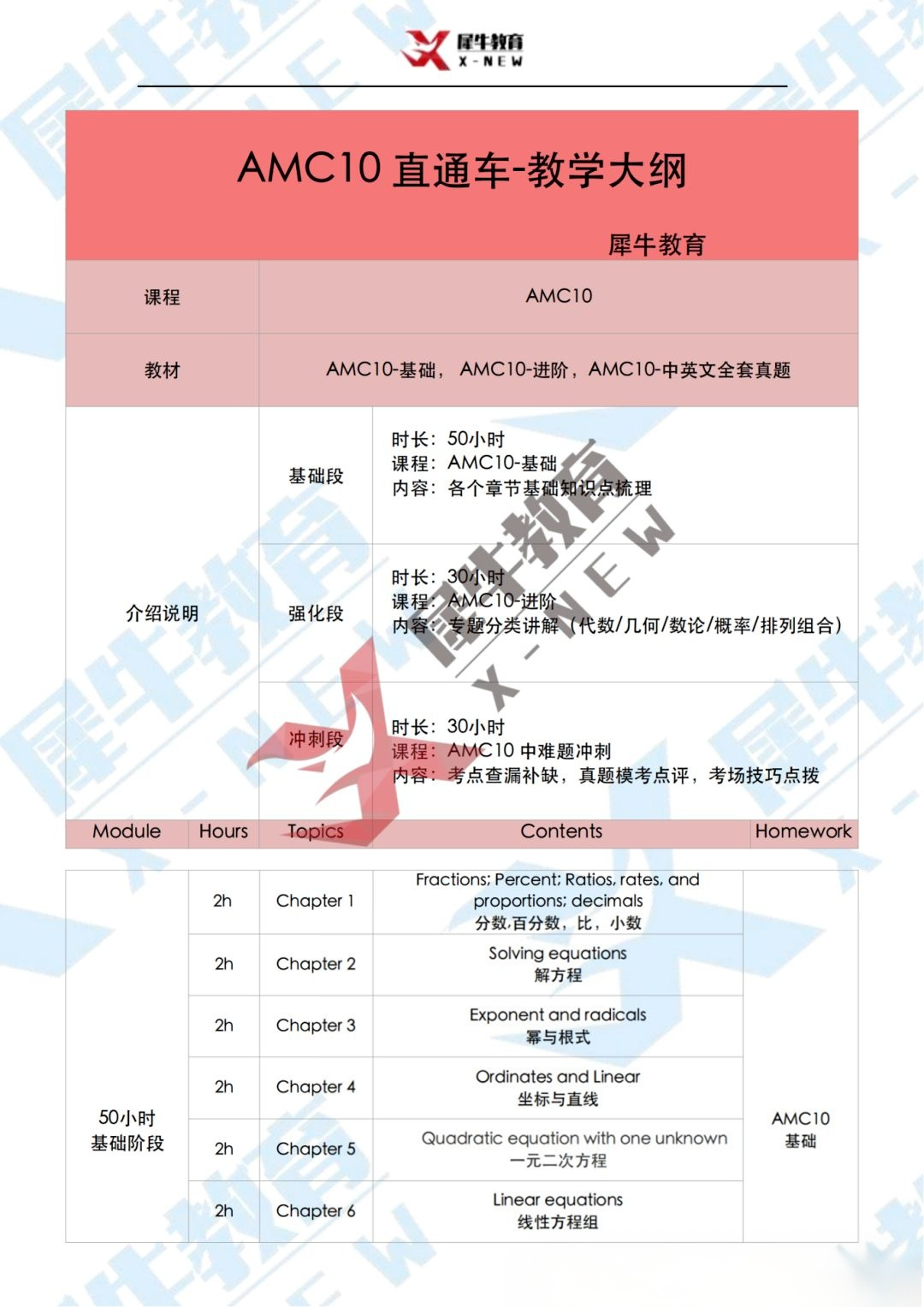2026年11月AMC10数学竞赛备考已经开始,有没有从基础知识点开始一起学习的同学?犀牛AMC10直通车培训课程新班报名开始,基础+强化+冲刺一站式学习提升,专业师资助力同学们冲刺AMC10奖项!