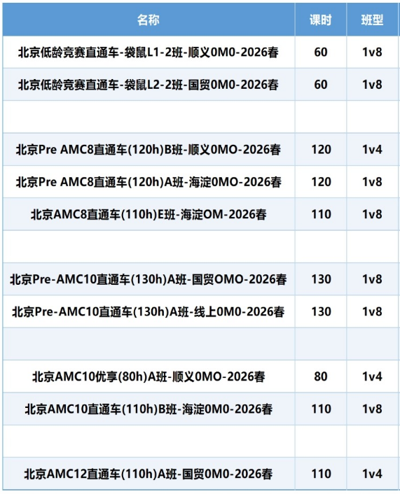 北京AMC8/10/12班型设置:3-8人小班/一对一课程;