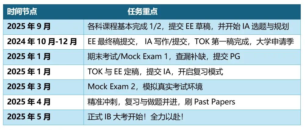 小编结合自身经历和IB学校课表,总结了学情安排,(以2025年5月大考为例):