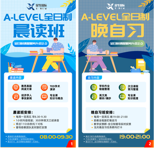 此外为ALevel全日制学员提供晨读和晚自习服务,助力学科进步,培养良好的学习习惯~