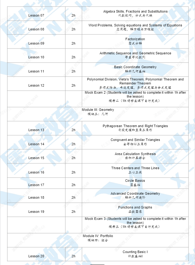 课程内容:系统梳理AMC10竞赛考点,训练AMC10竞赛解题思路和答题技巧