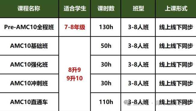 以上的AMC10备考三大细节,犀牛老师已经整合成完整的AMC10直通车辅导方案,知识点学习强化+技巧点拔+考前冲刺。3-8人小班课,在线咨询了解课程安排。