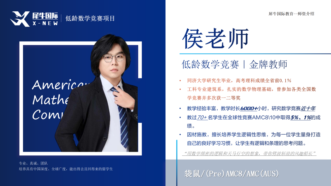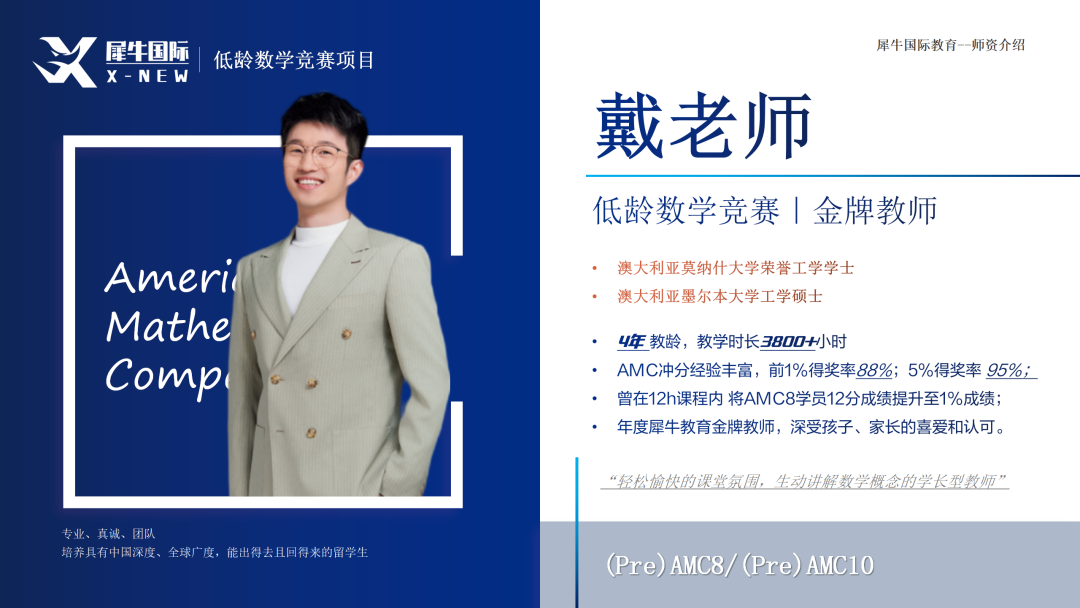 营造轻松愉快的AMC8课堂氛围,生动讲解数学概念的学长型教师!