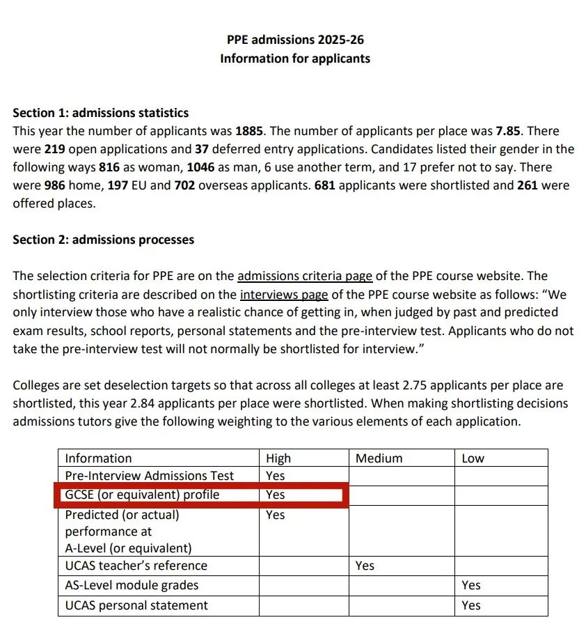 首先,像牛津大学PPE专业就在招生录取报告中将GCSE成绩和笔试以及ALevel预估成绩统一定为higher级别的标化因素。