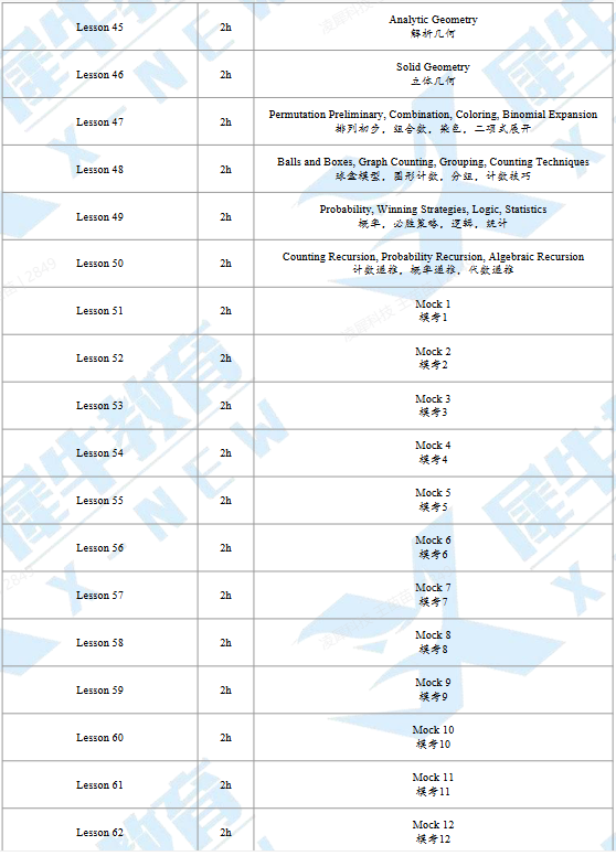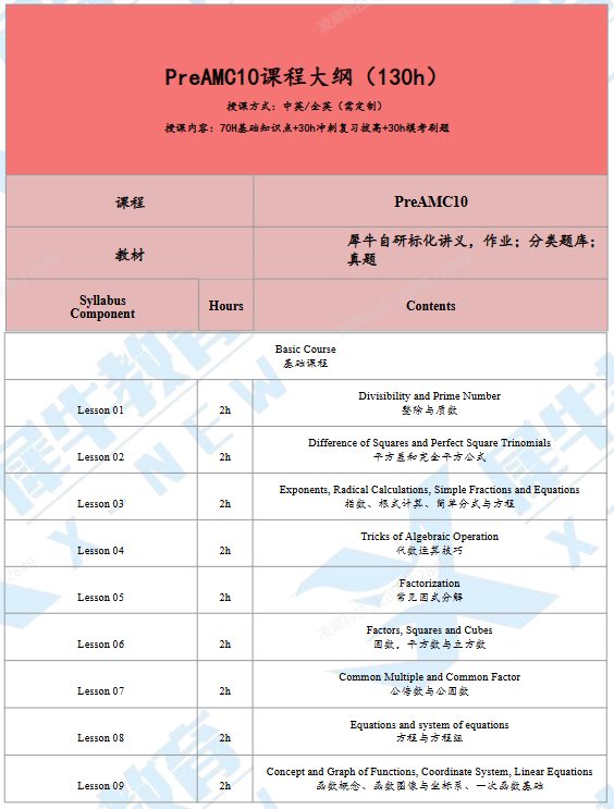 PreAMC10课程课表详情展示
