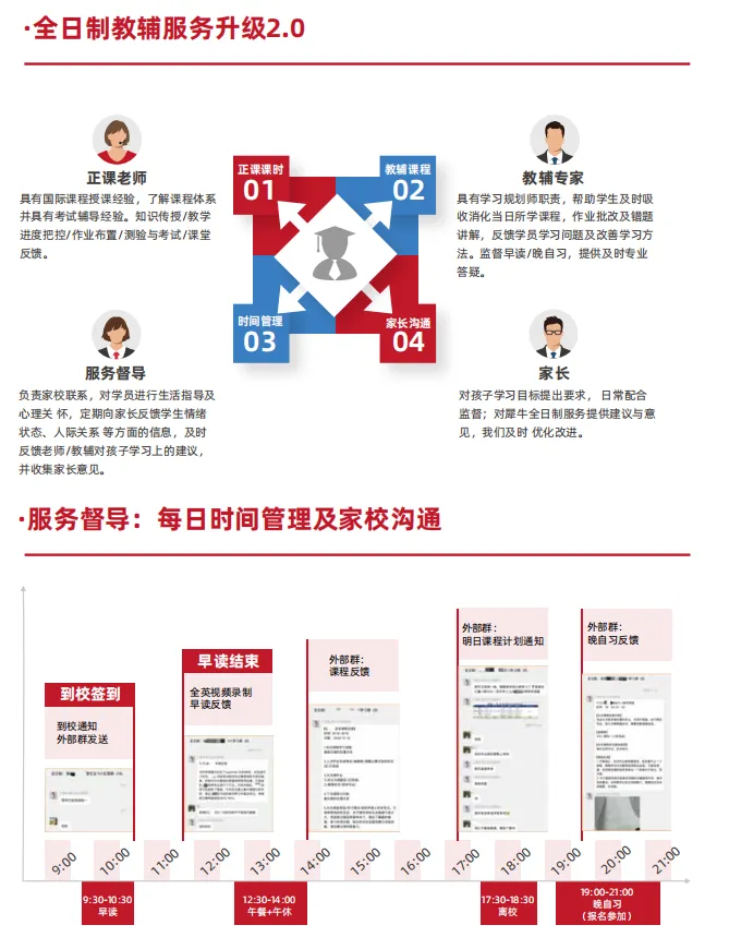 脱产机构会根据孩子的基础和目标院校,制定紧凑的个性化学习计划,放弃冗余内容,重点突破考点,确保孩子在规定时间内完成课程学习和考试,顺利赶上申请窗口,不浪费宝贵的升学机会。