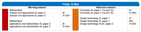 数学AA/AI HL:Paper 1在5月14日 9:00,Paper 2在5月15日 9:00,Paper 3在5月20日 9:00
