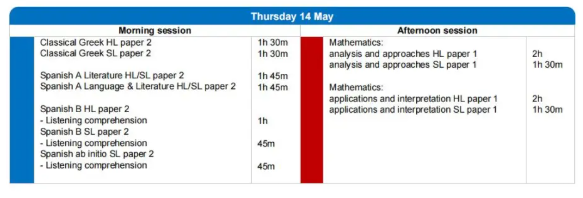 IB数学考试时间