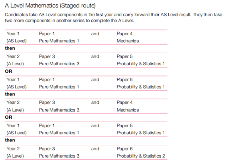 ▍模块化考试以爱德思A-level数学为例: