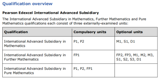 AS阶段P1、P2必考,M1、S1、D1三选一;A-level则P1、P2、P3、P4必考,剩下的单元从(M1.S1)、(M1.D1)、(M1.M2)、(S1.D1)、(S1.S2)五种组合中任选其一,总共要考够6个单元。