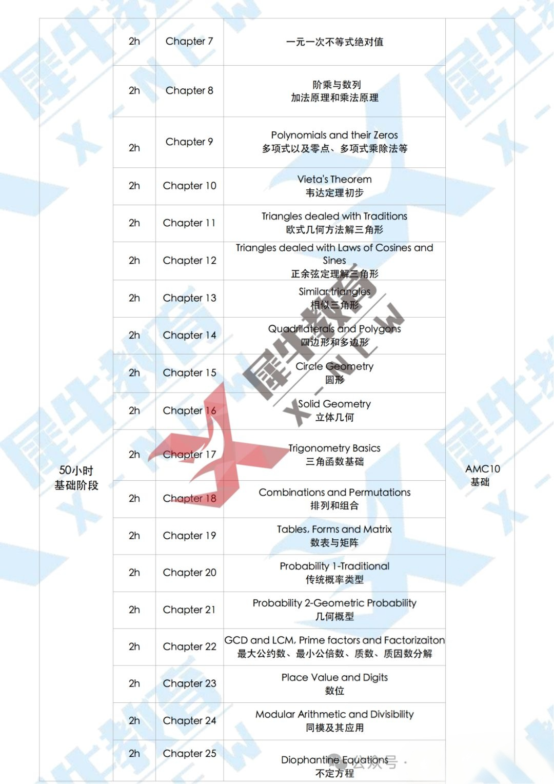 犀牛AMC10直通车培训课程主要是针对7-9年级,基础内容还没有完全掌握,需要从基础内容一步步学习提升到考前冲刺。