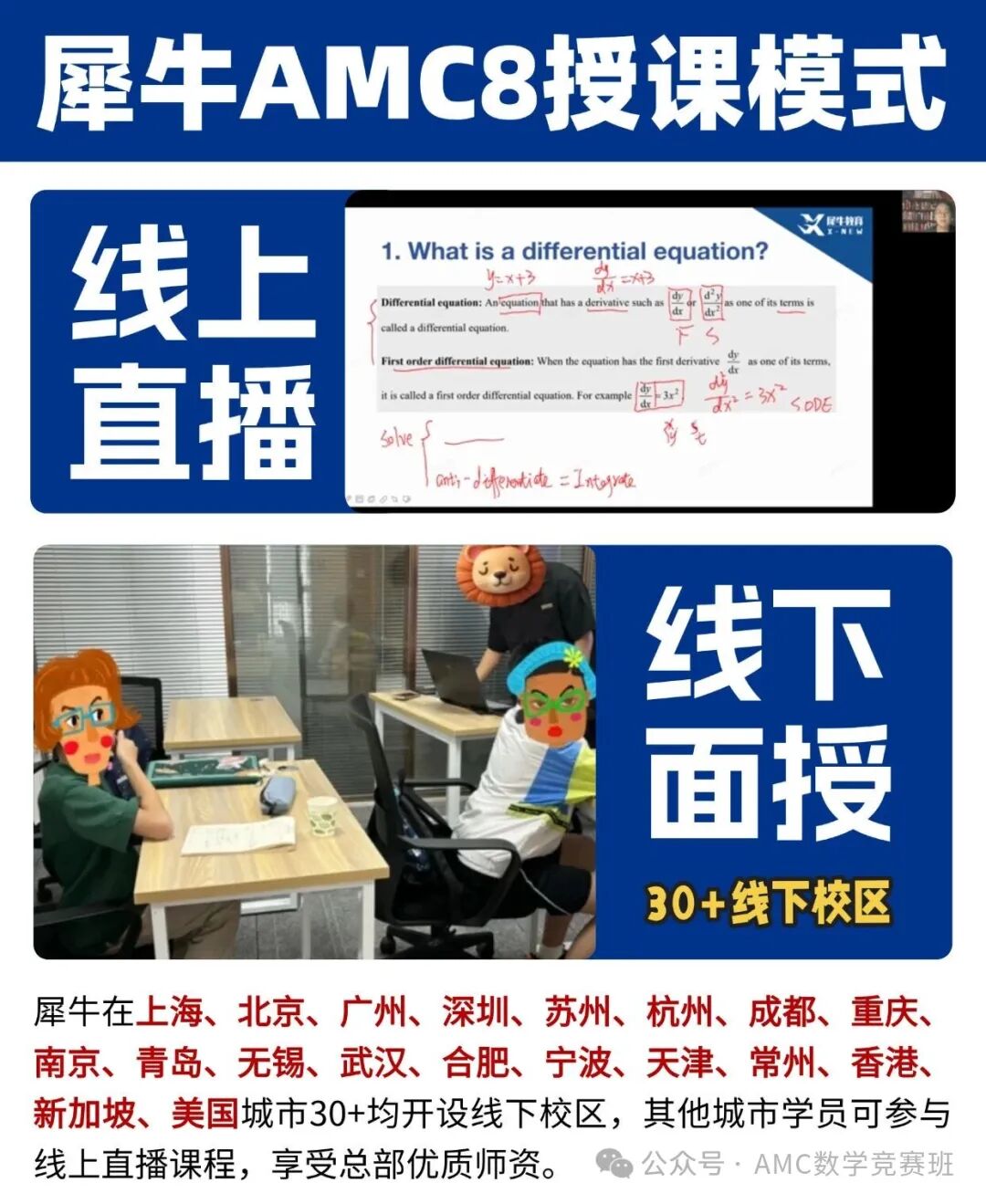 犀牛AMC8竞赛培训课程暑假班,凭借专业的师资、科学的课程体系,帮助无数小学员斩获AMC8全球前1%、前5%奖项,成为家长信赖的AMC8培训之选,核心优势一目了然。