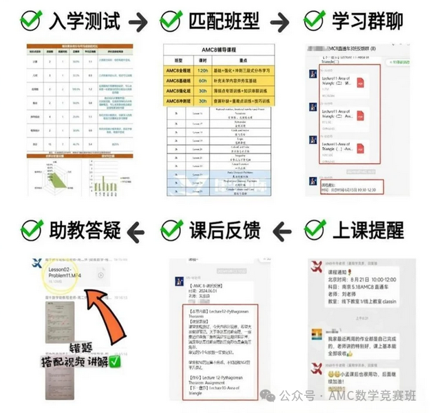 依托海量AMC8真题数据,独家研发讲义,系统梳理核心知识点和高频考点,分【基础、强化、冲刺】三阶推进,配合每周限时模考,培养孩子的答题速度和应试技巧,同时搭配24小时助教答疑,确保孩子不留知识盲区。