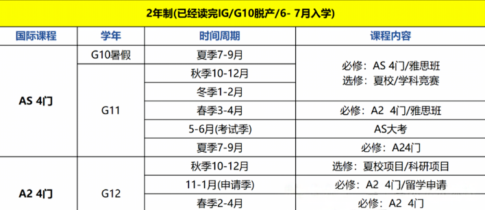 ①高二或高三转轨学生:快速转国际课程,通过1年时间完成Alevel课程,申请留学