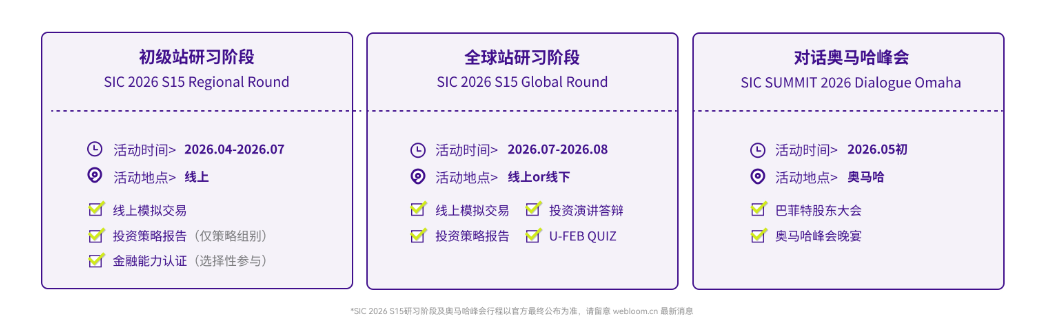 冲击藤校商科、G5经济的秘密武器来了——SIC中学生投资挑战赛。MIT、哥大、康奈尔官方背书,优胜者更可直通巴菲特股东大会现场。2026 S15赛季报名倒计时:6月1日截止,席位有限。