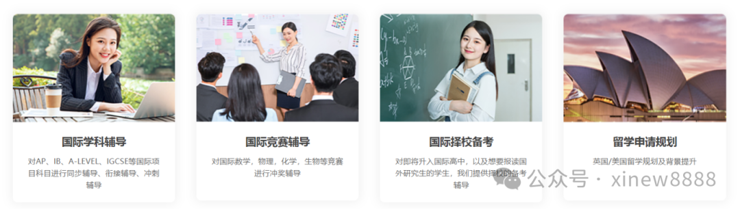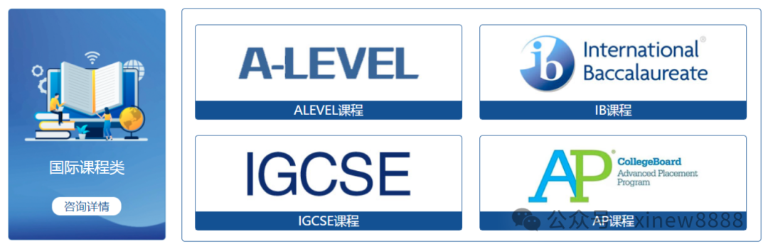 我们也提供国际课程:AP、IB、ALEVEL、IGCSE等国际课程的(寒假衔接、同步辅导、考前冲刺课程),来满足不同目标群体的学生需求。