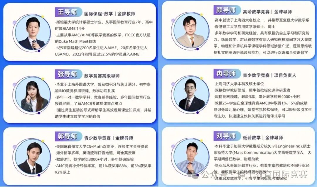 AMC8数学竞赛辅导课程-师资(部分)