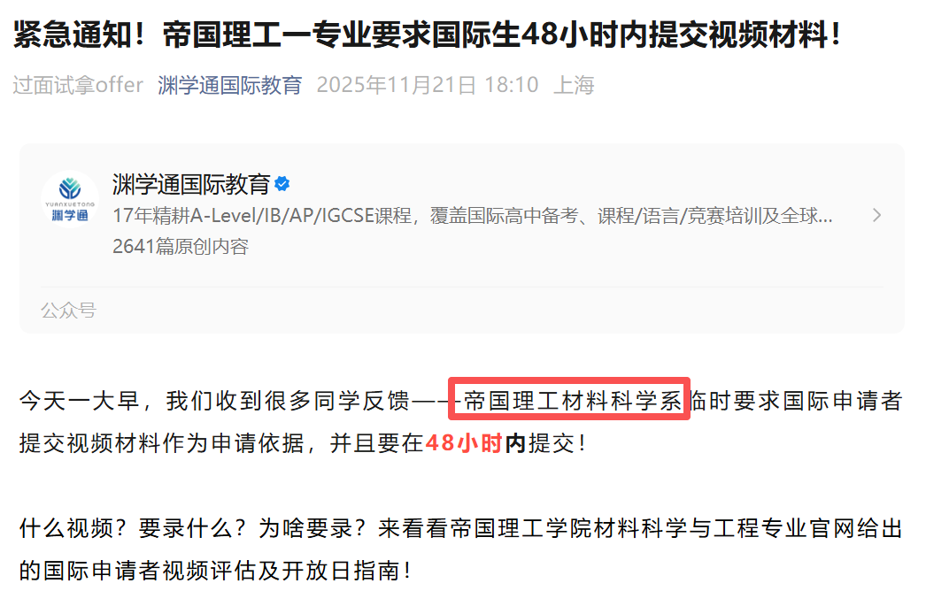 这么一看,2027届帝国理工化学工程申请者的申请战线拉得可太长了!笔试→线上专业分享会→提交视频任务,时间和精力压力不言而喻。
