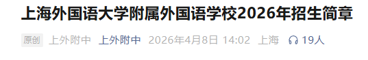 2026上外附中招生信息